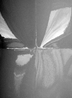 Aus diesem Prozess Licht, Zeichnung, Fotografie entsteht so etwas wie eine räumliche Skulptur, die sich je nach Standort verändert. Die Entscheidung des Standorts liegt im Foto, dass diese Räumlichkeit fixiert