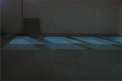 Johanna von Monkiewitsch umrandet die wandernden Sonnenflächen, die durch die verschiedenen Fenster auf den Atelierboden fallen, mit Kreide. Dabei zeichnet sie immer mit gleicher Geschwindigkeit, wobei sie durch die Bewegung des Lichts niemals an die Anfangsstelle zurückkommt. Wolken bestimmen die Pausen.