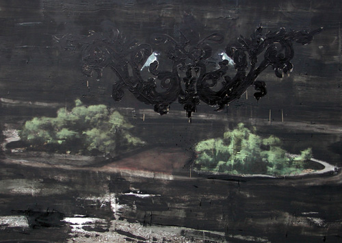 Dunkle Verkehrsinsel, 2008, 180 x 250 cm, Öl auf Leinwand