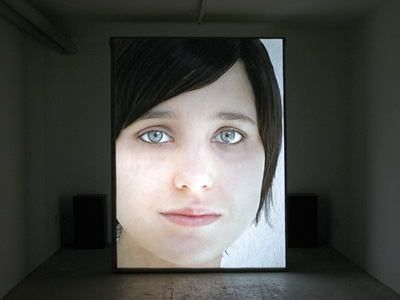 (2009, video still on high glossy photo paper, bended and fixed on the wall, 110 x 90 cm)
