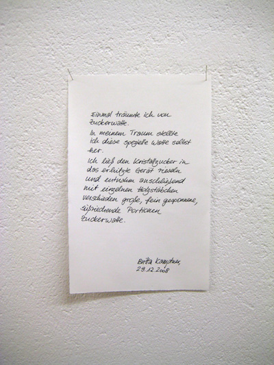 zeigen eine raumbezogene Installation bestehend aus Zeichnung, Licht und Zuckerwatte.