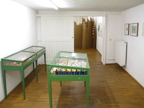 front, right: Karsten Bott, Tee (aus Archiv für Gegenwartsgeschichte) (2010, Teepackungen, Vitrine, 75 x 150 x 100 cm)